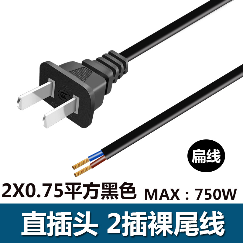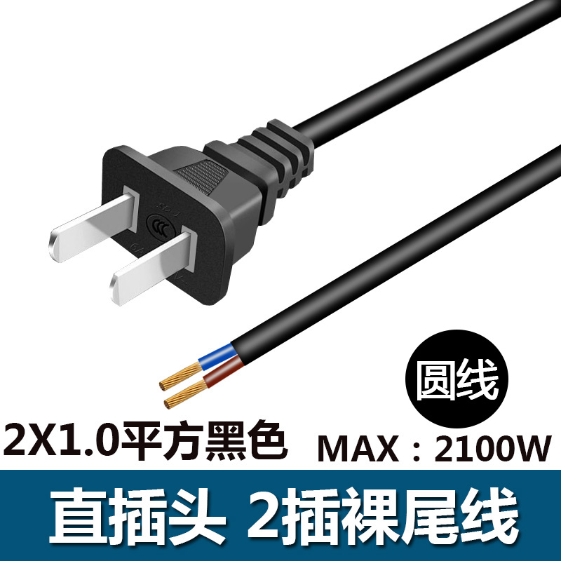 两插国标带插头电源线2芯1 1.5平方两项两孔二脚带线插头单头裸线