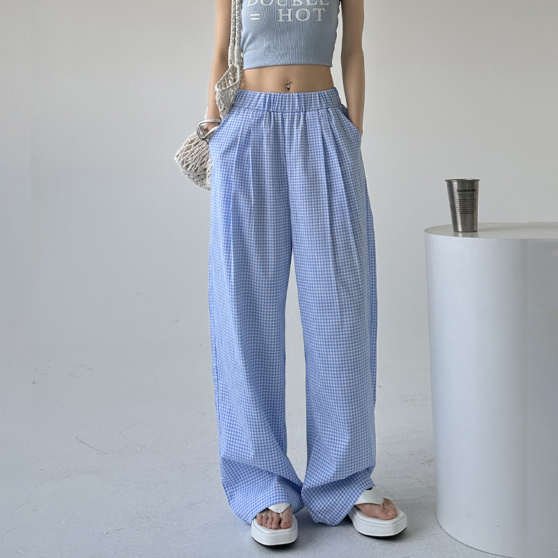 女春秋新款 休闲直筒慵懒松弛感裤 高腰垂感窄版 裤 子 西装 黑色阔腿裤