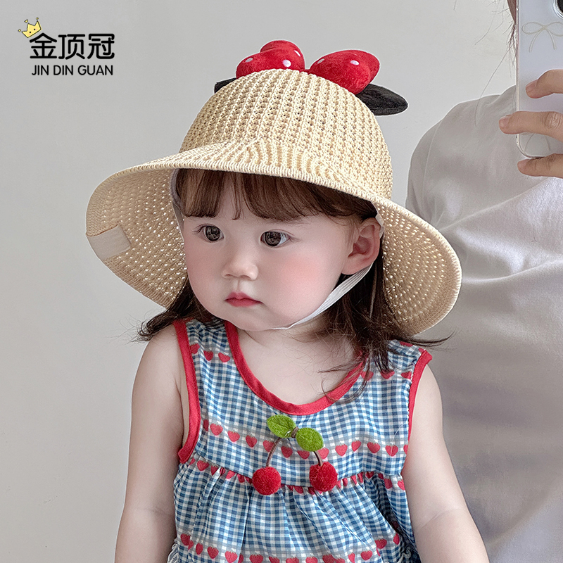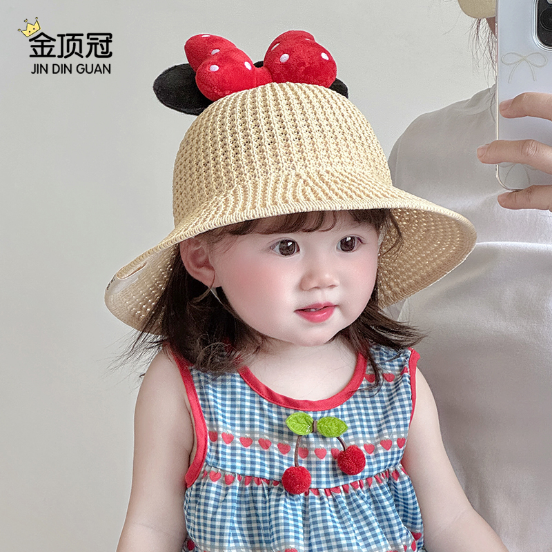 韩版 遮阳宝宝帽子可爱米奇大檐女童渔夫帽出游防晒帽 儿童草帽夏季