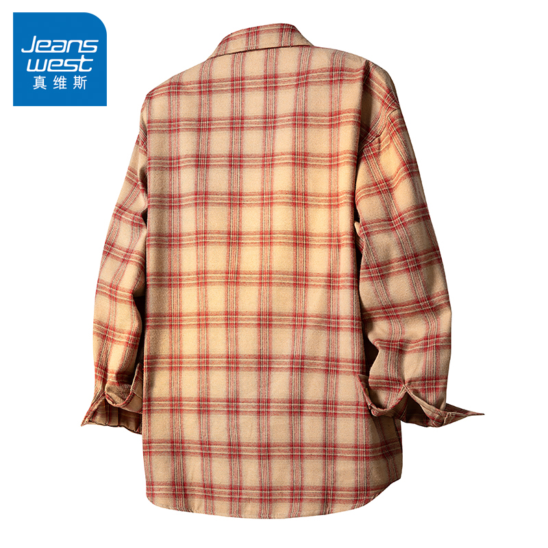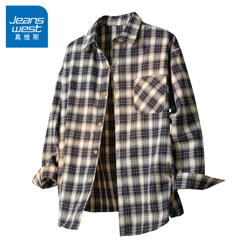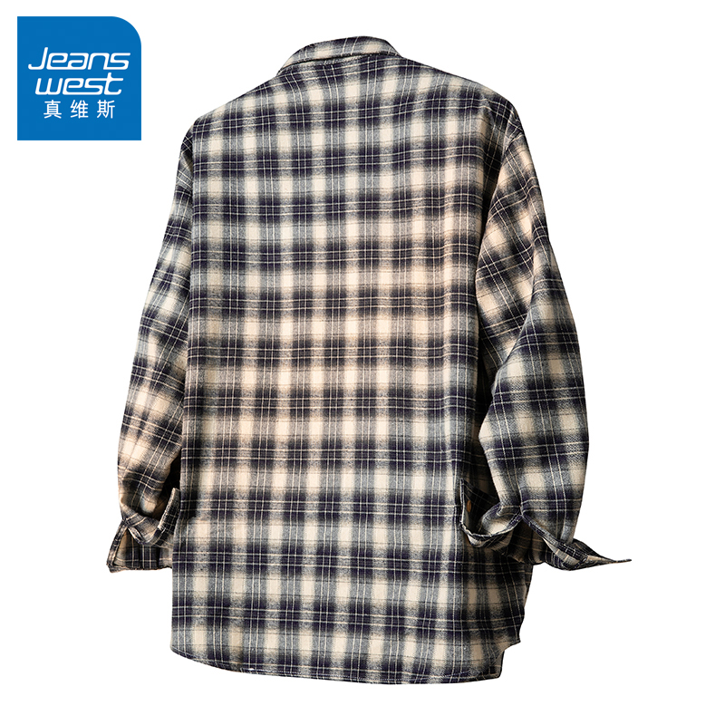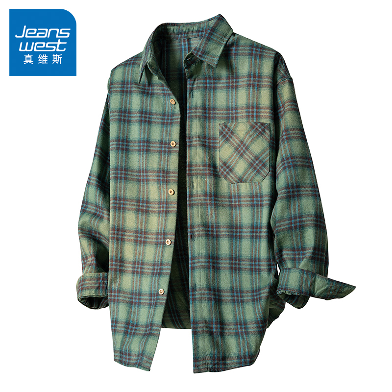 格子衬衫 百搭男生长袖 2025新款 衬衣经典 外套 潮牌男装 N5真维斯男士