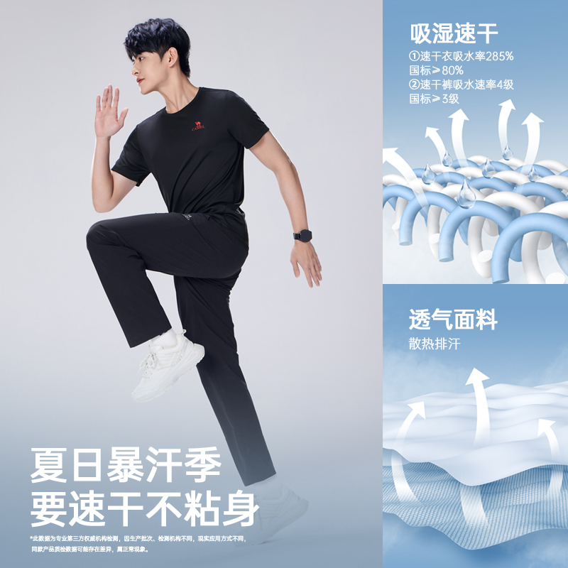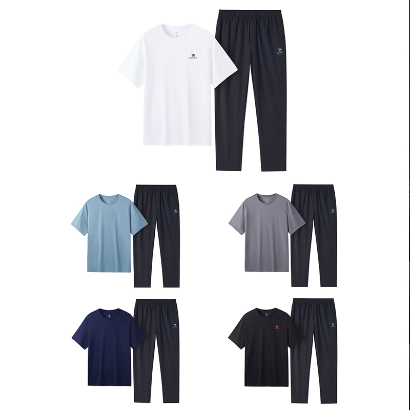 套装 骆驼速干短袖 透气弹力运动跑步休闲长裤 子两件套男夏季 t恤裤