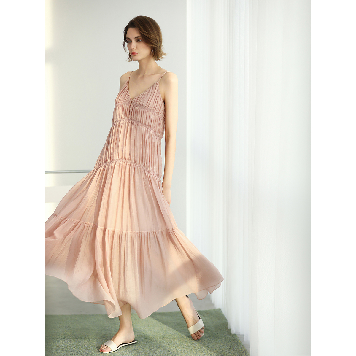 COCOBELLA度假风司马克工艺莱赛尔肌理感连衣裙吊带裙FR3098