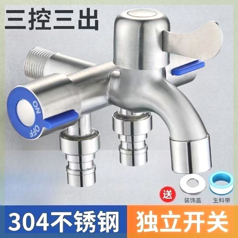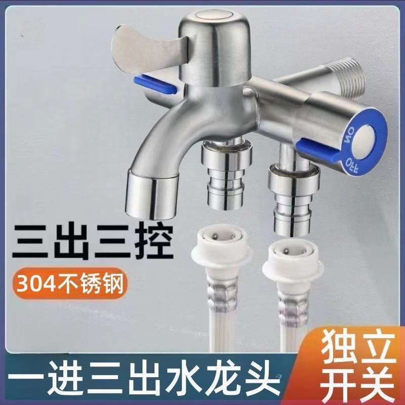 一进三出洗衣机水龙头阳台拖把池三通马桶分流器多功能带喷枪三控
