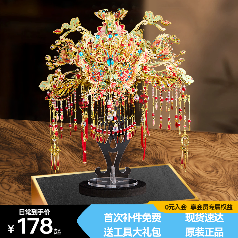 钢达凤冠diy手工材料花轿十里红妆金属拼图立体拼装 模型新婚礼物