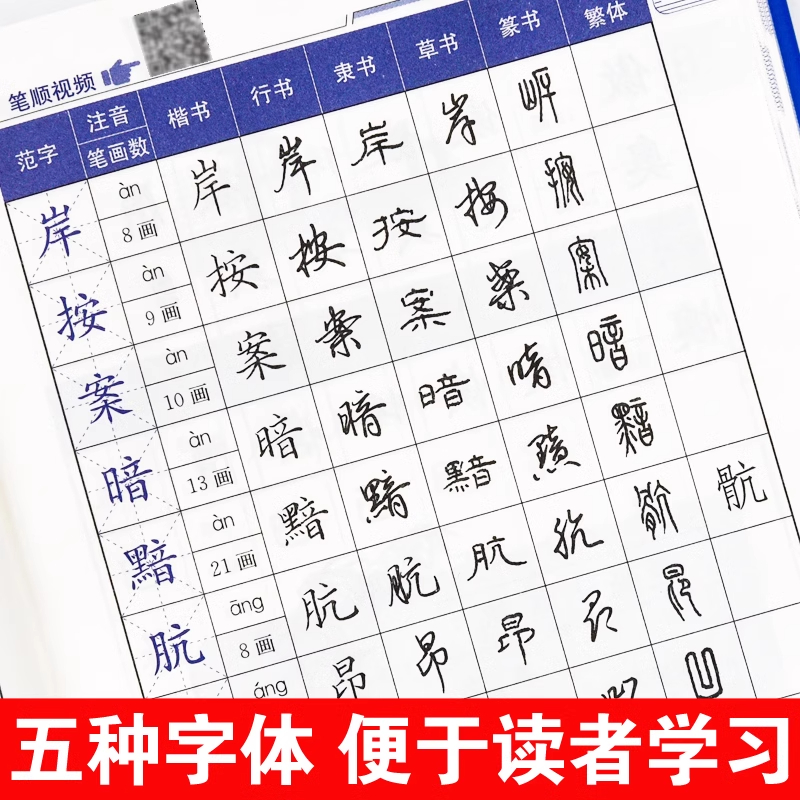 常用汉字硬笔五体字典楷书行书隶书草书篆书硬笔书法爱好者成人大学高中生初中生小学生实用工具书繁体字简体字硬笔书法鉴赏