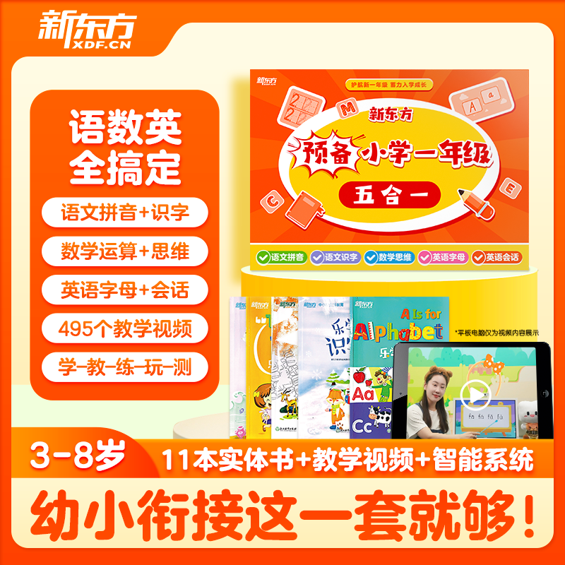预备小学一年级五合一幼小衔接拼音识字数学字母会话五合一120课次助力幼升小促销 新方官方旗舰店