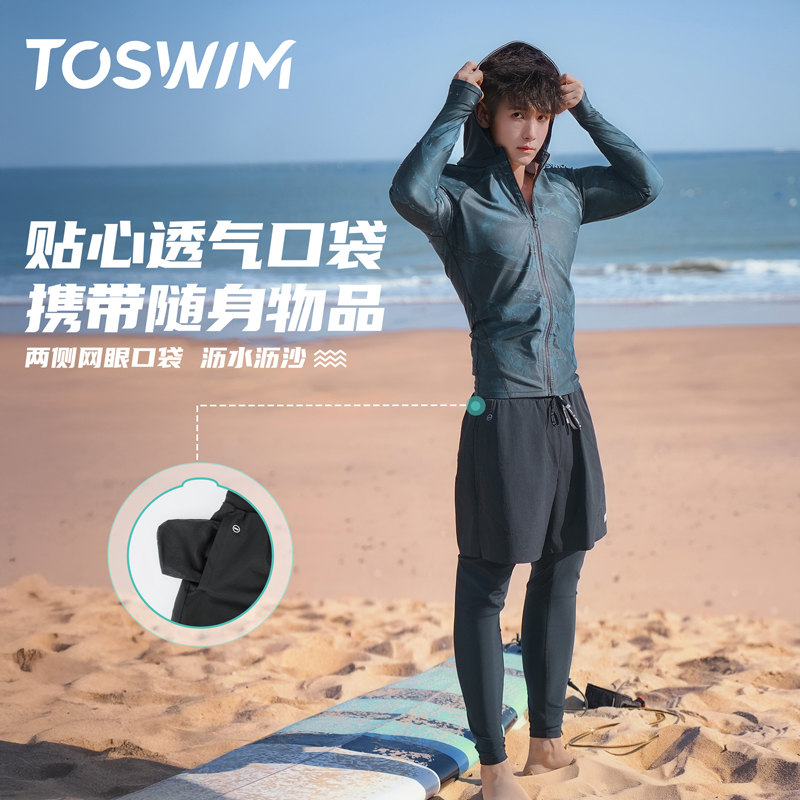 2025新款 TOSWIM男士 套装 泳衣泳裤 成人海边冲浪潜水防晒游泳衣 长袖