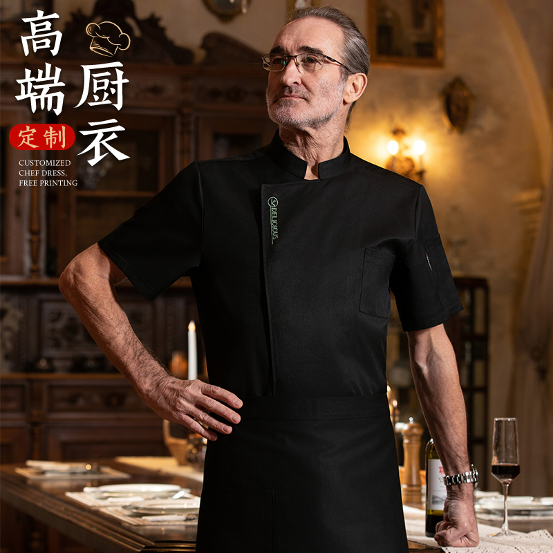 专用餐饮后厨冰丝灰色饭店服装 透气厨师工作服男短袖 酒店薄款 夏季
