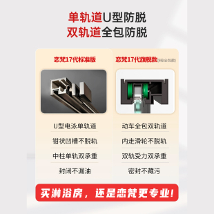 极窄缓冲一字型淋浴房干湿分离玻璃隔断卫生间浴室推拉移门浴屏