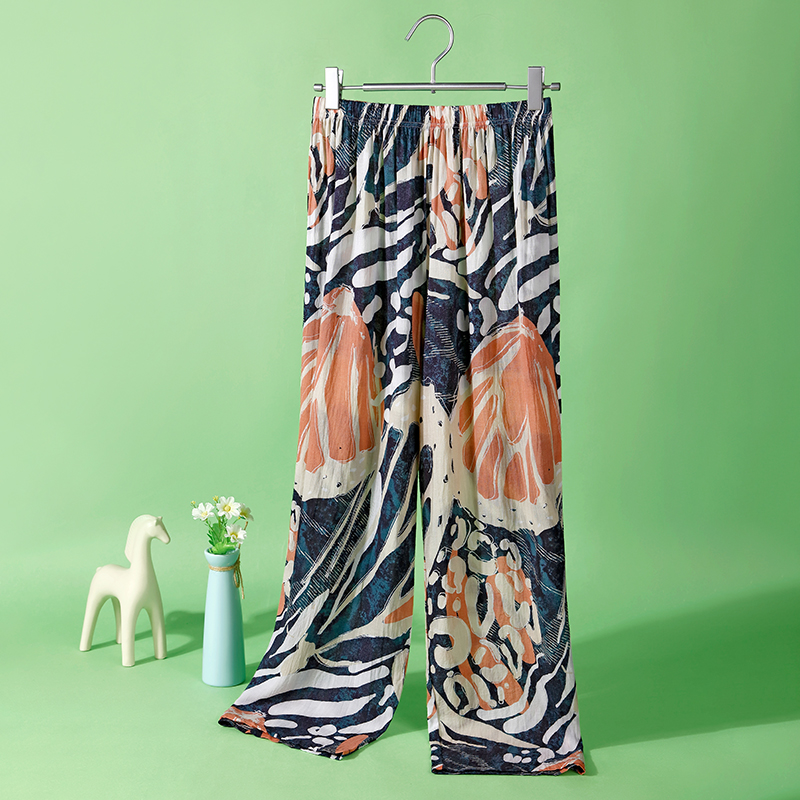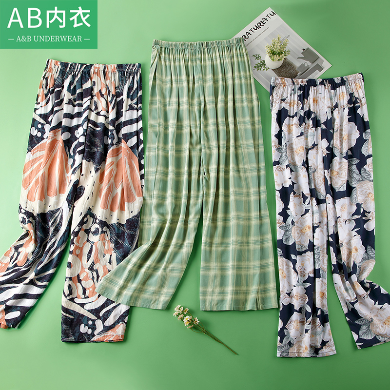 高腰直筒休闲家居可外穿长裤 AB女士棉绸睡裤 阔腿裤 宽松大码 夏季