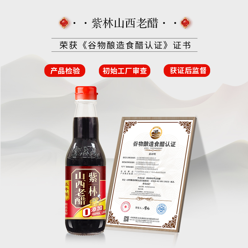 紫林5度山西老醋260ml迷你玻璃小瓶山西陈醋酿造食醋无添加宿舍用