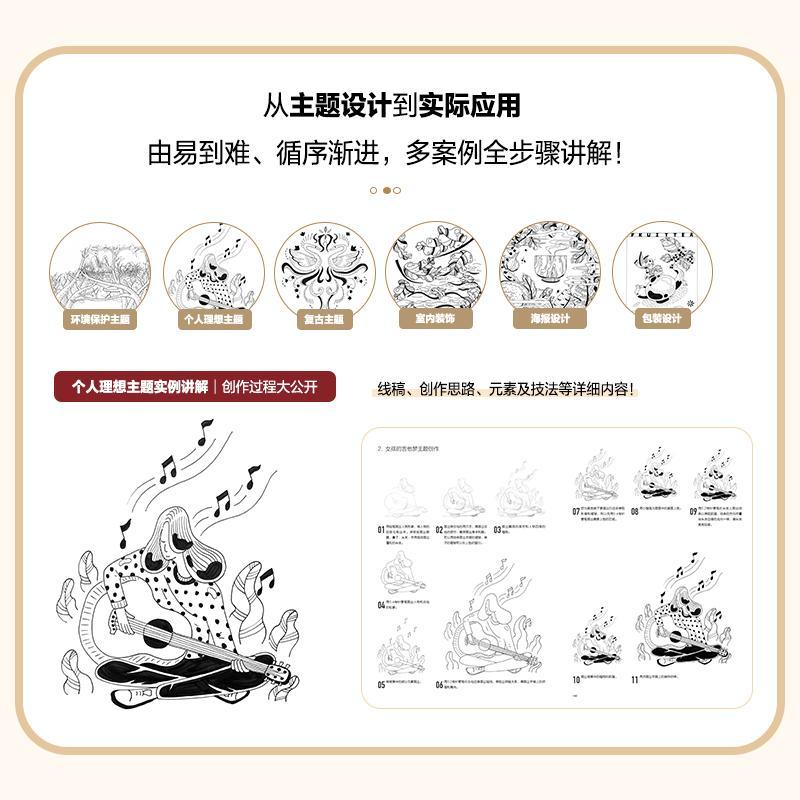 手绘创意线描插画实例教程 正版 饰画 黑白装 饰画创意线描手绘插画黑白画意黑白图案纹样钢笔画教程素描白描入门 包邮