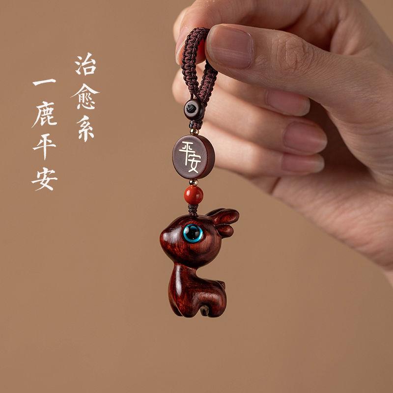檀木小鹿汽车钥匙扣挂件可爱系挂饰手机吊坠男女情侣礼物