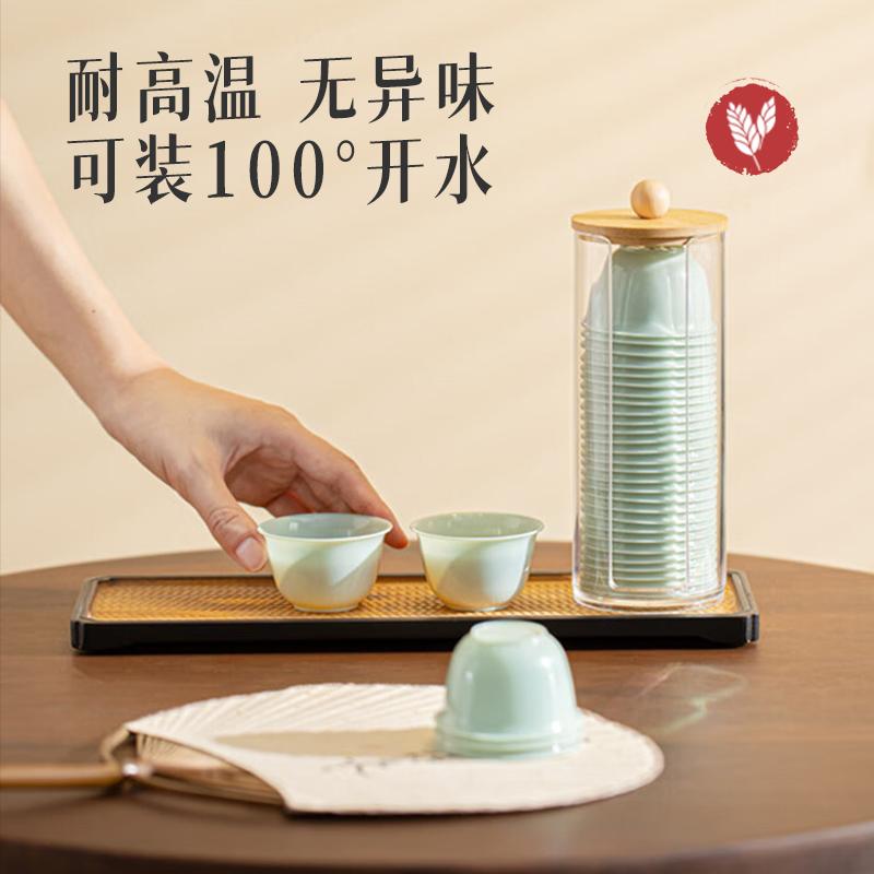 高档一次性功夫茶杯茶具家用品茗杯待客喝茶杯子户外便携稻壳泡茶
