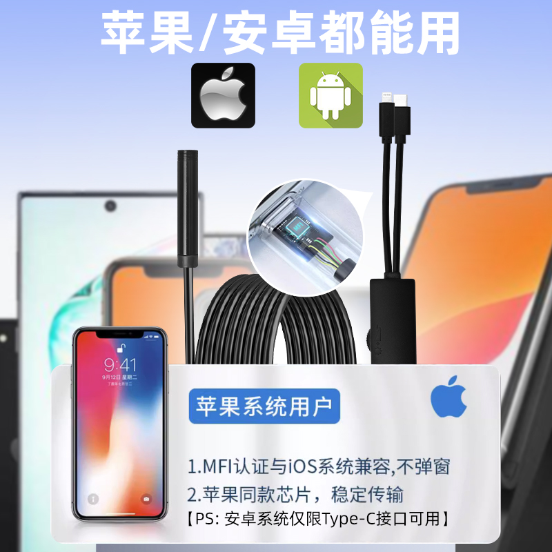 手机内窥镜高清摄像双镜头汽车维修发动机管道检测可视探测器探头