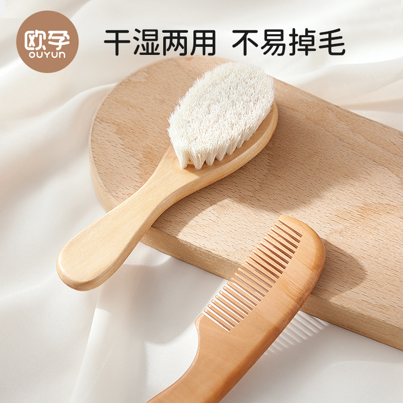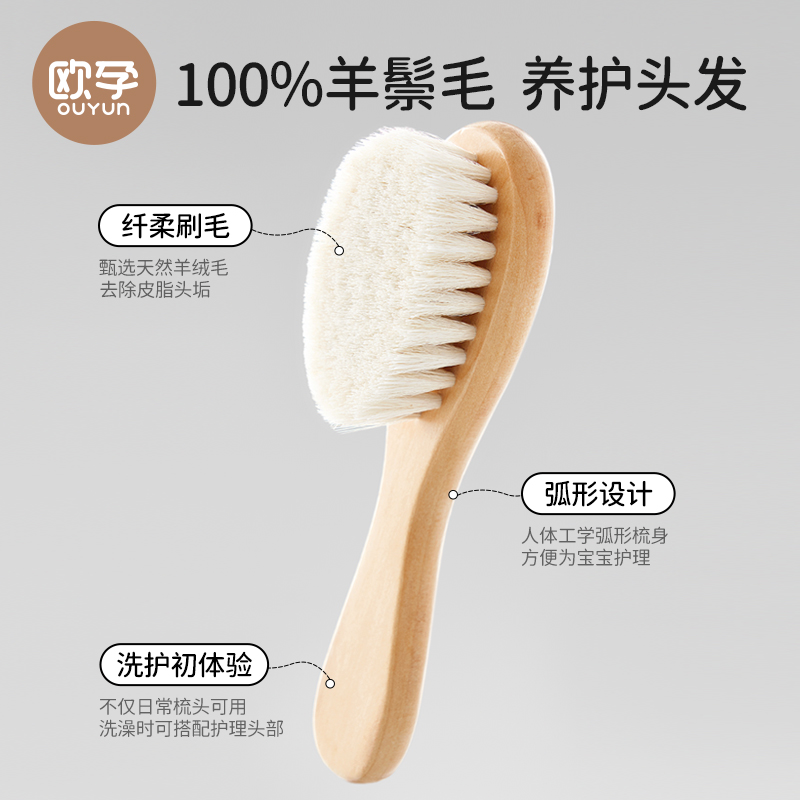 欧孕婴儿梳子新生儿胎毛去头垢刷婴幼儿专用按摩洗头羊毛软毛刷子