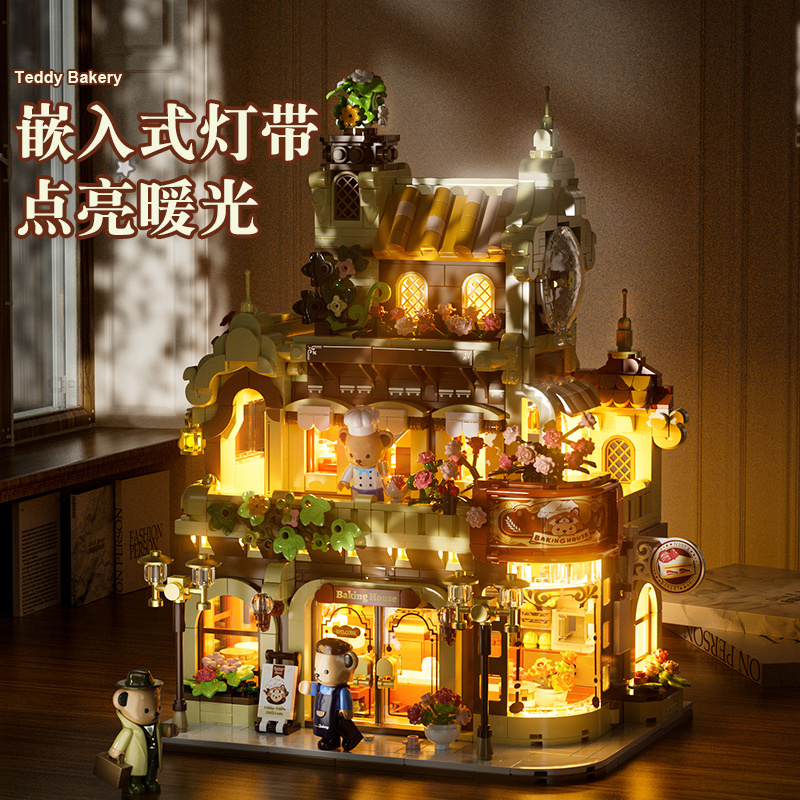inbrixx积乎泰迪治愈咖啡烘焙屋街景模型拼装 积木摆件节日礼物