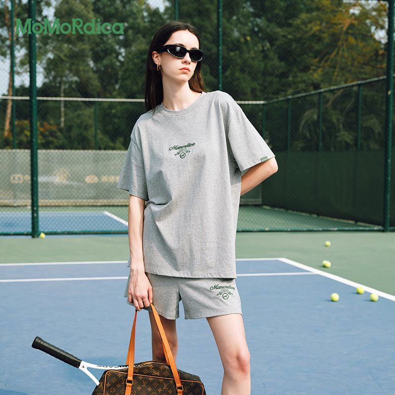 刺绣套头微弹T恤简约休闲男女同款 Momordica2025夏纯棉短袖 清仓