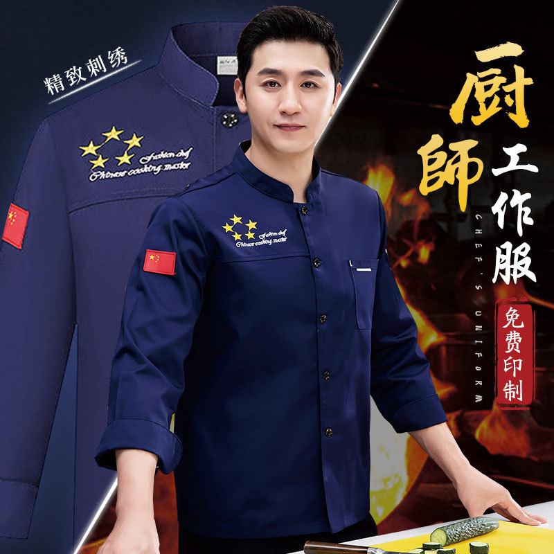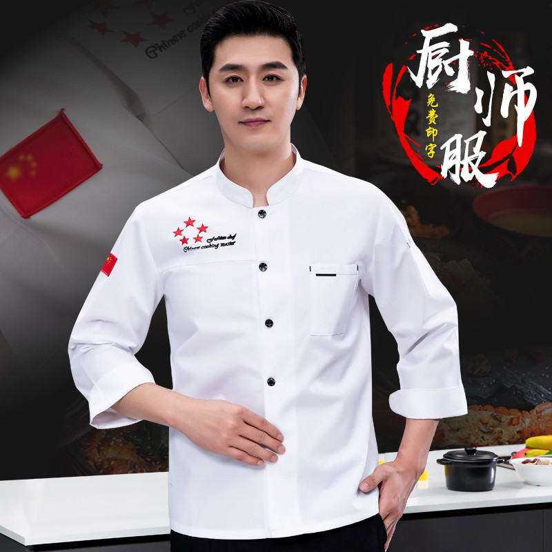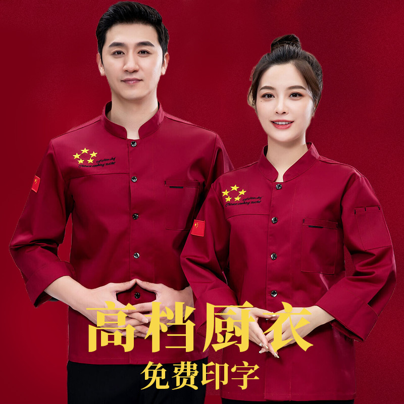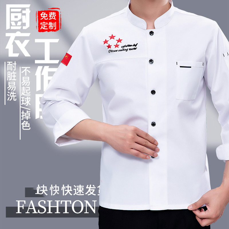 酒楼中餐厅厨师工作服长袖 国风女 刺绣logo烘焙饭店厨房工衣男短袖