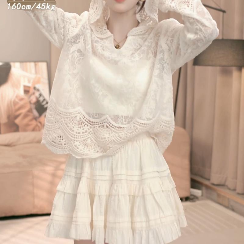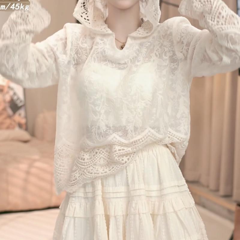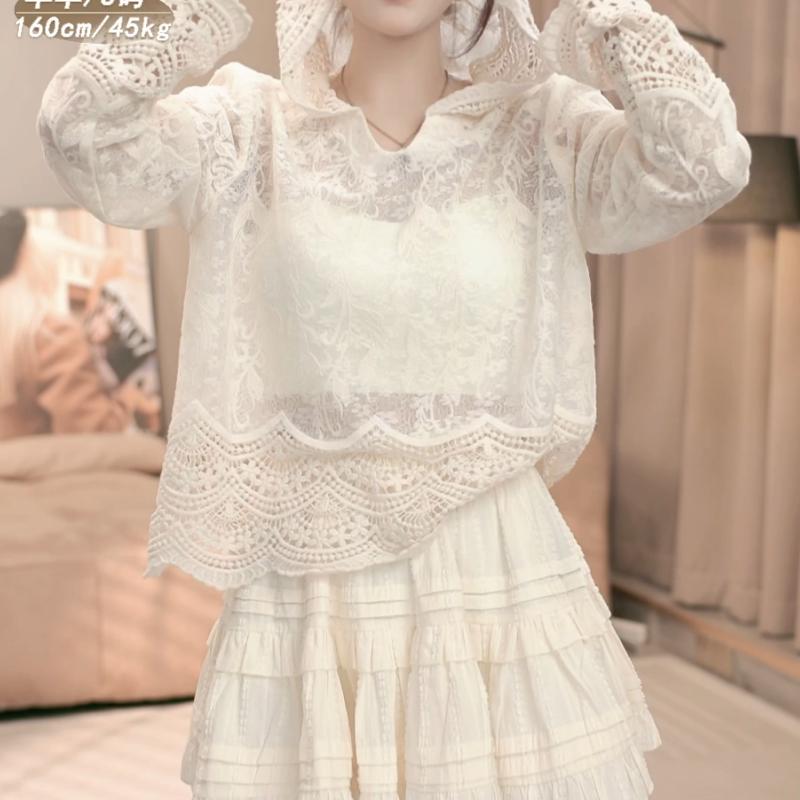 连帽蕾丝边上衣女拼接气质百搭重工镂空钩花蕾丝衫 2025年春季 新款