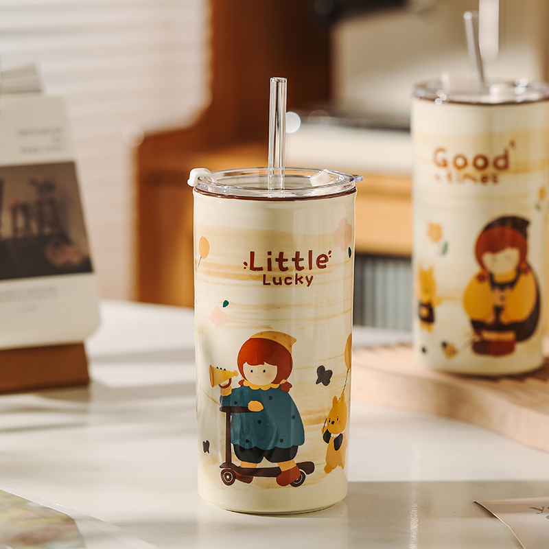 316不锈钢保温杯男女学生高颜值大容量吸管水杯户外运动便携杯子