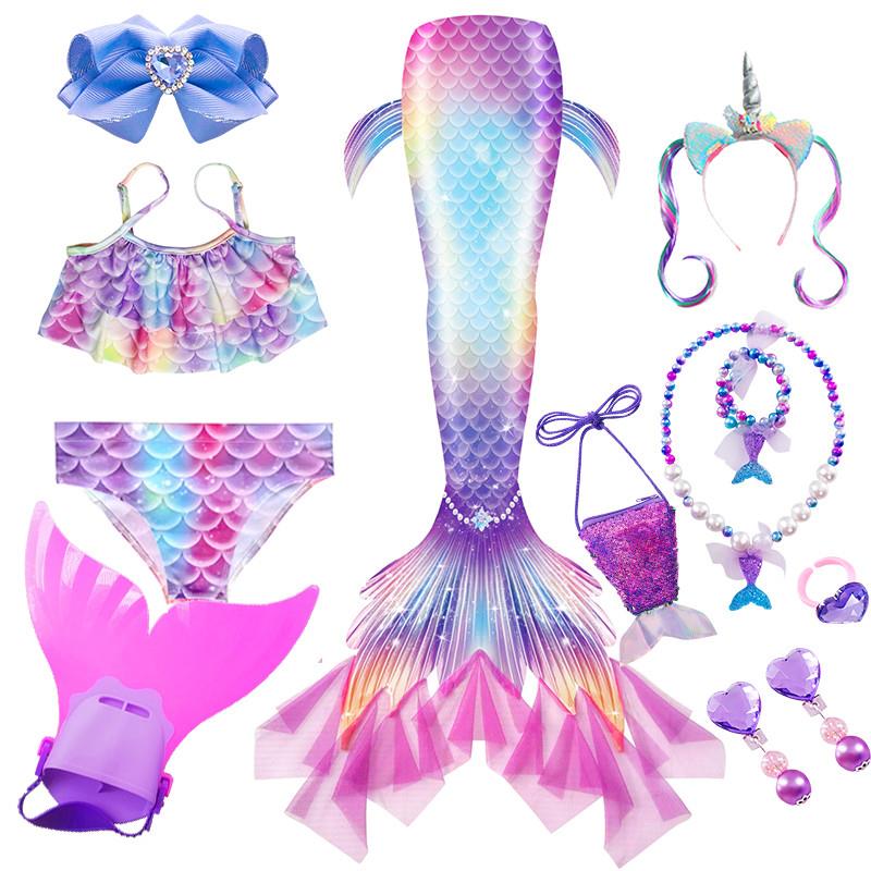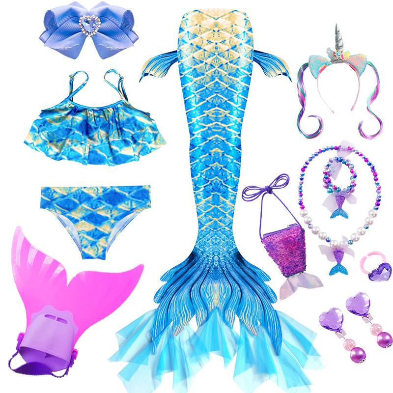 女童泳衣美人鱼尾巴儿童人鱼公主比基尼人鱼服泳衣分体式 潜水服装