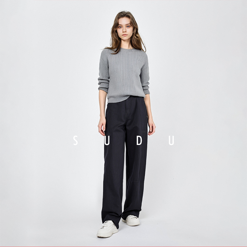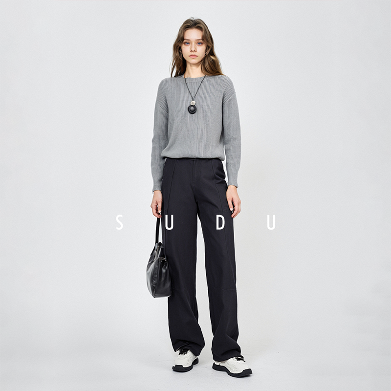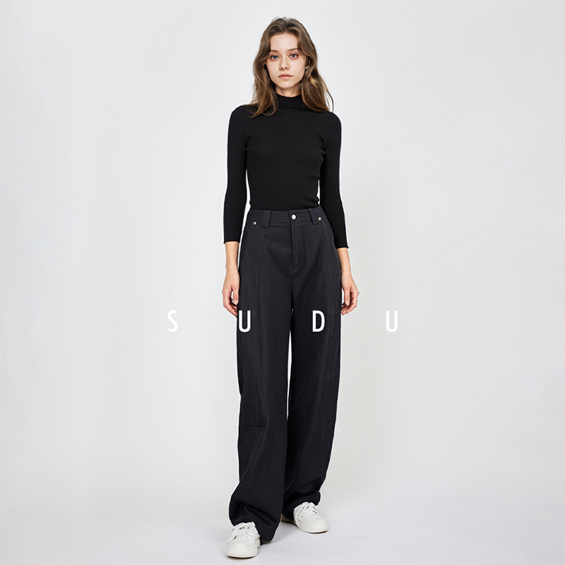 休闲宽松百搭镰刀长裤 SUDU素都2025秋季 弧形工装 高腰阔腿裤 子 新款