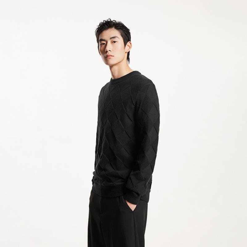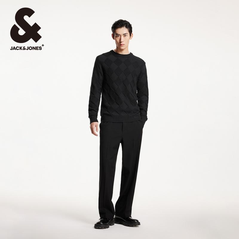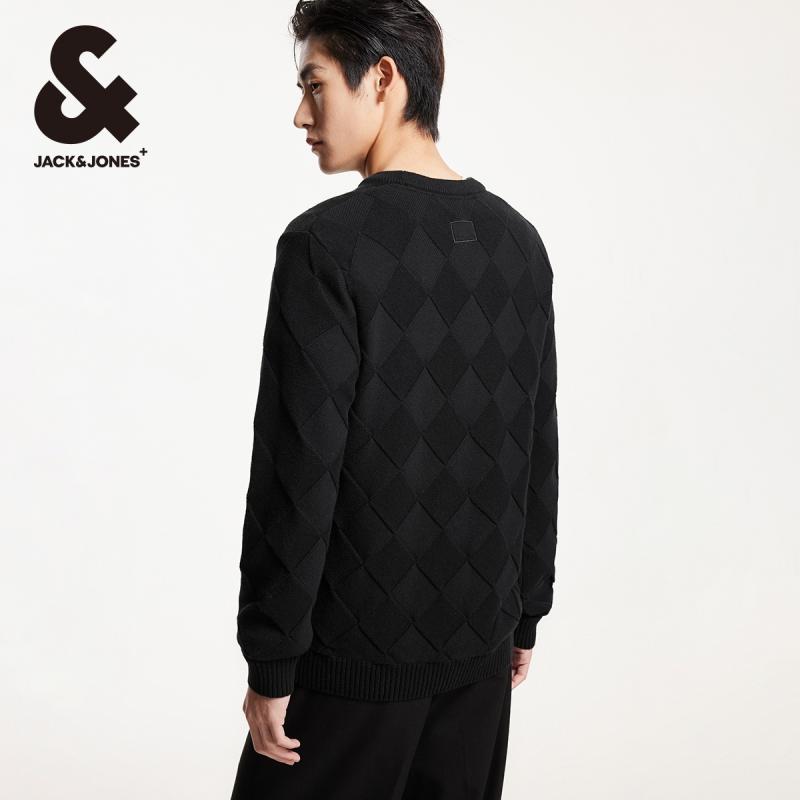 衣身菱格圆领毛衣男装 杰克琼斯冬季 潮百搭休闲直筒针织衫 时尚 新款