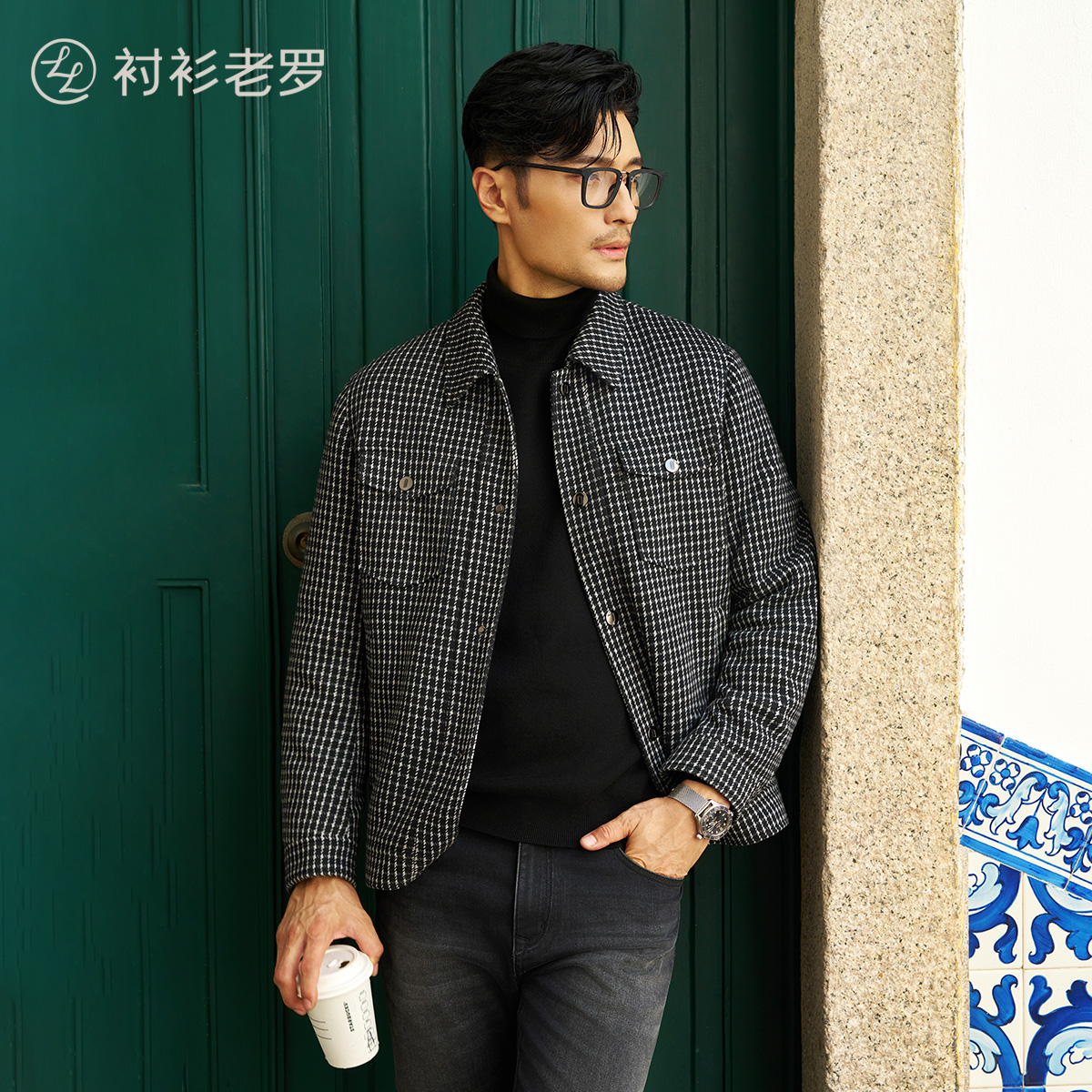 夹克绵羊毛千鸟格外套商务休闲男装 星耀五号 249X0J521N 老罗 衬衫