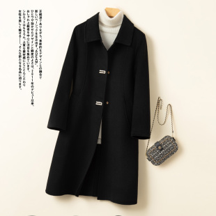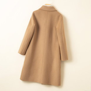 POPCHRIO欧可芮 羊毛外套女 驼绒大翻领双面毛呢呢子大衣中长短款