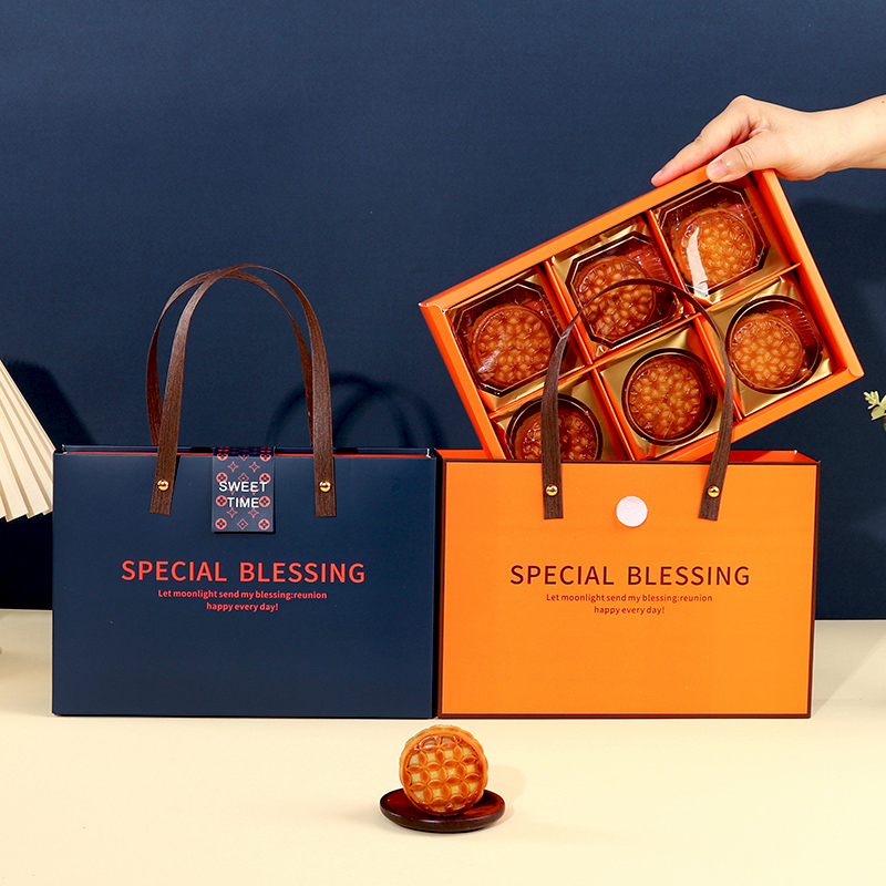 8手提空盒25新款 中秋月饼包装 盒礼盒橙色冰皮蛋黄酥盒子80g6粒4