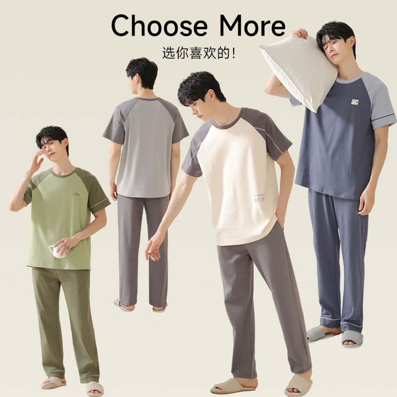 长裤 短袖 春秋季 薄款 猫人纯棉睡衣男士 全棉简约家居服套装 2025新款