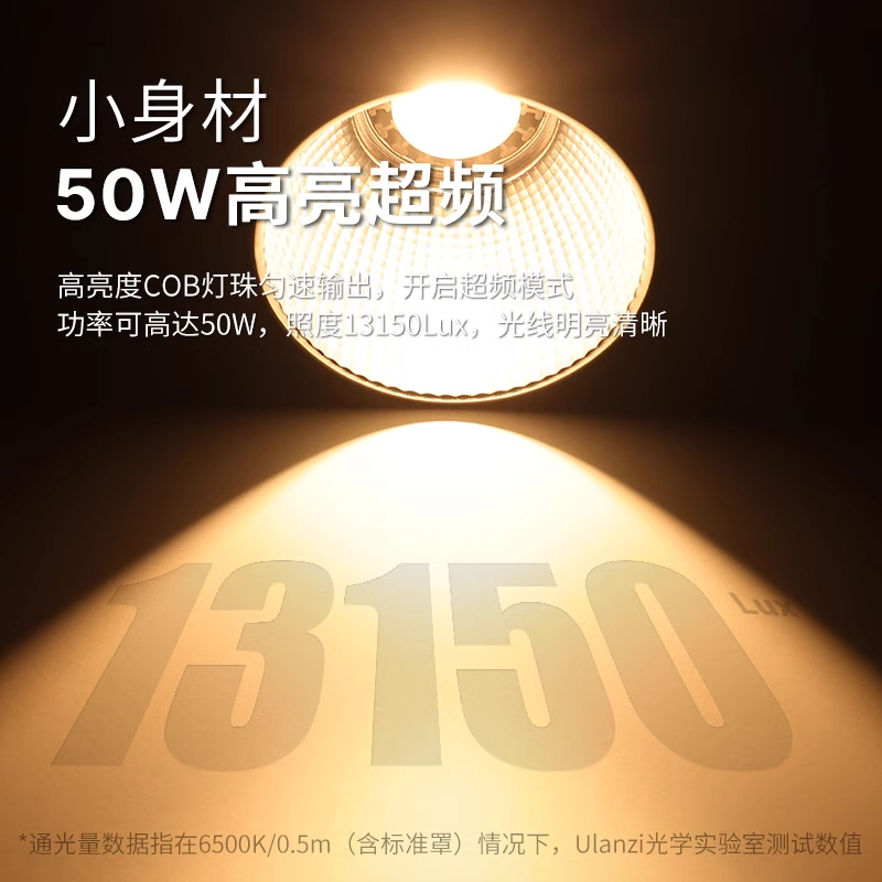 Ulanzi优篮子40W RGB双色温补光灯掌上COB直播影视灯内置电池便捷户外手持摄影夜拍打光柔光灯影棚影室灯 Pro