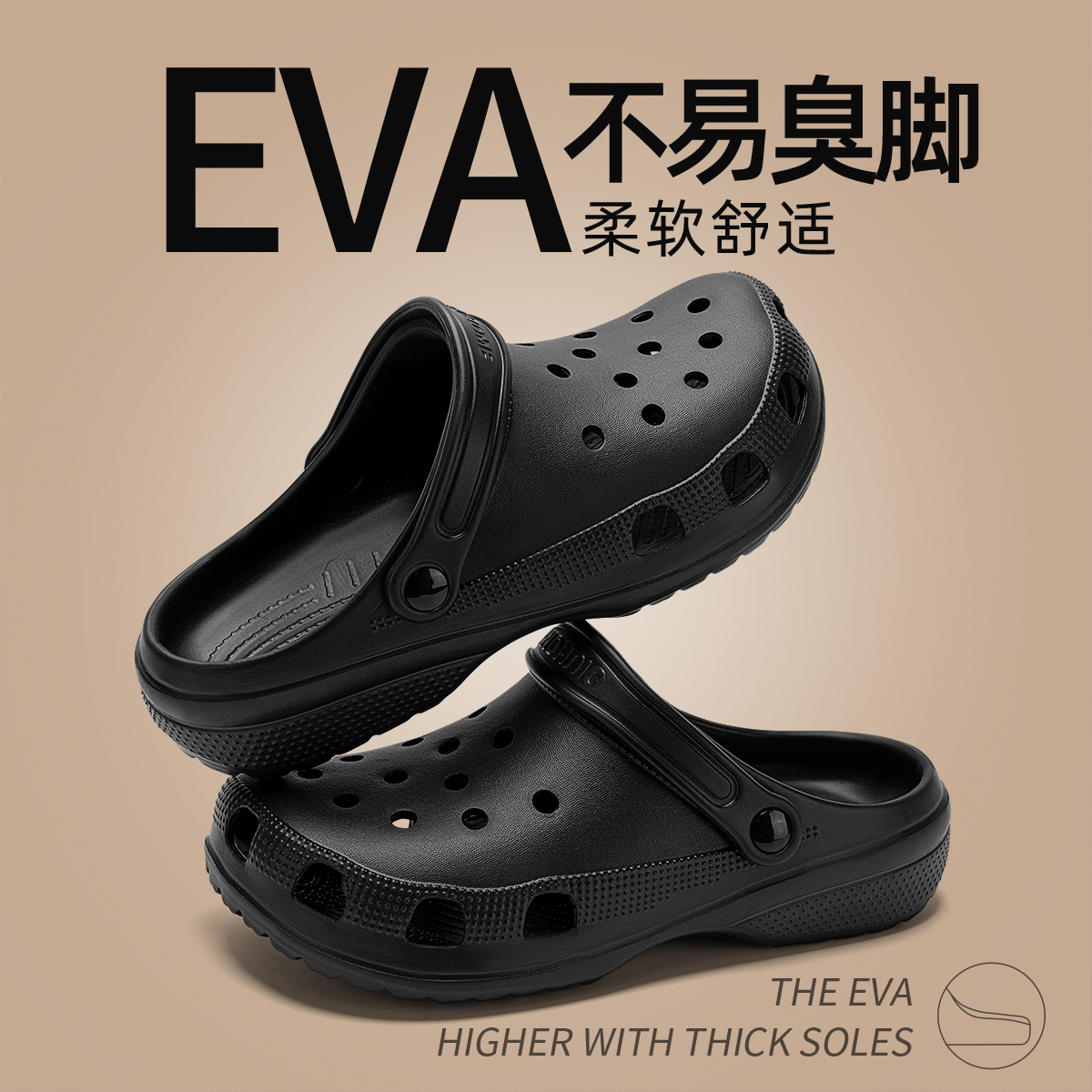 EVA防滑防臭户外厚底踩屎感凉拖鞋 洞洞鞋 包头沙滩男 男士 2025新款