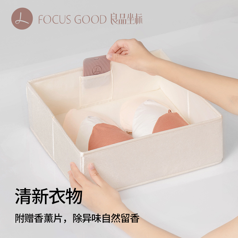 良品坐标有风来信内衣收纳盒折叠布艺三合一抽屉式 袜子收纳盒 内裤