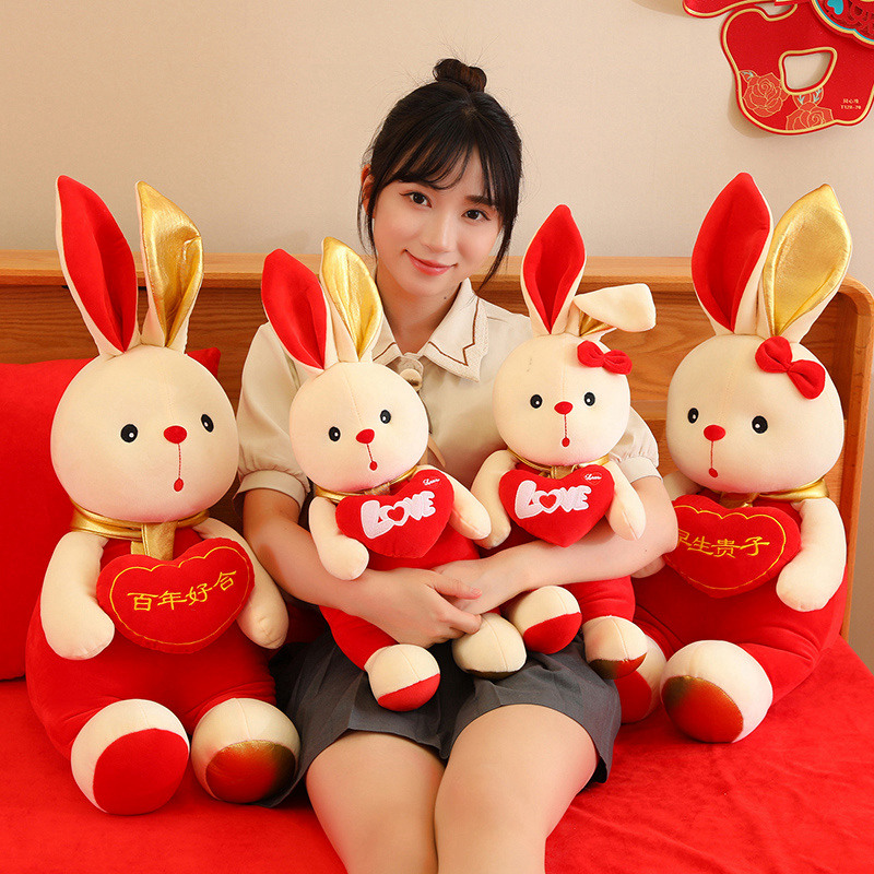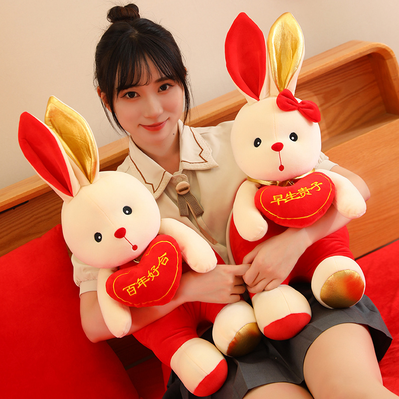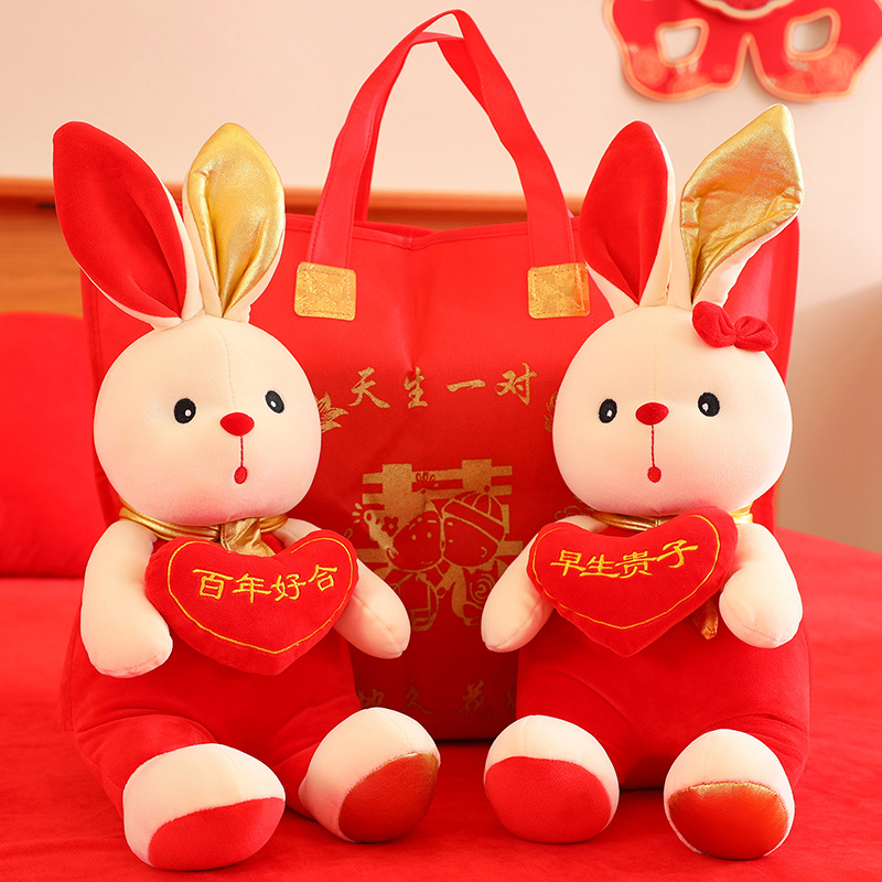 新款 压床娃娃情侣兔子玩偶一对毛绒玩具结婚礼物婚庆新房床上摆件