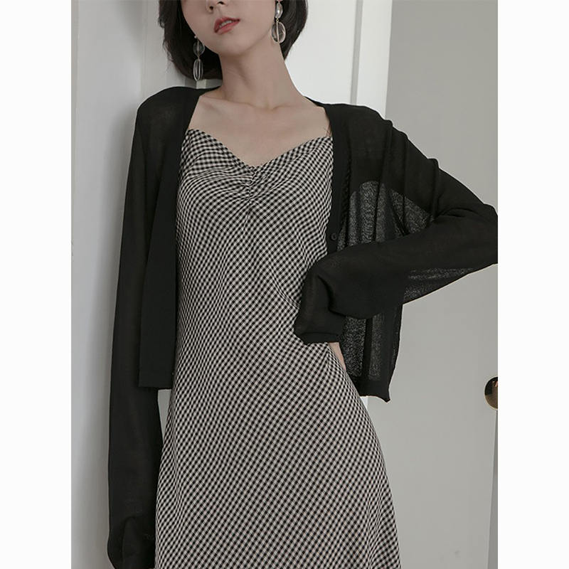 外套空调衫 黑色针织开衫 冰丝防晒吊带外搭夏季 女春夏披肩薄款 短款