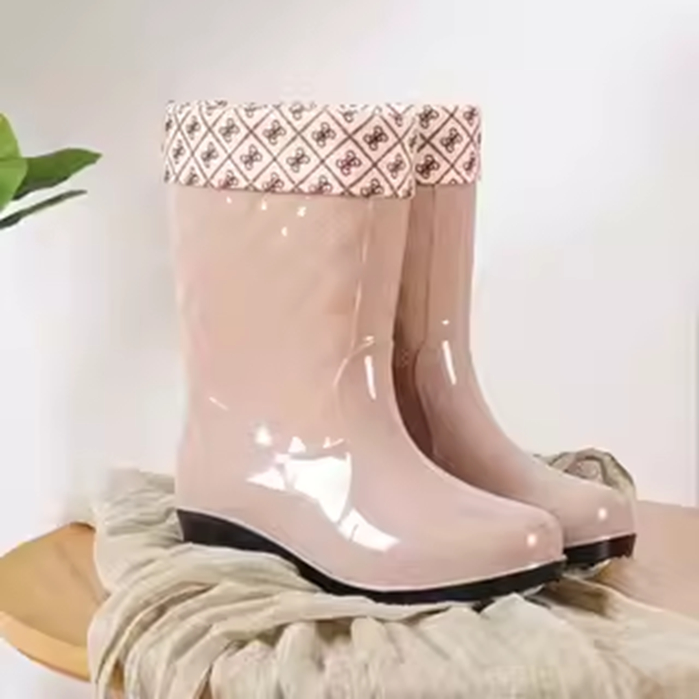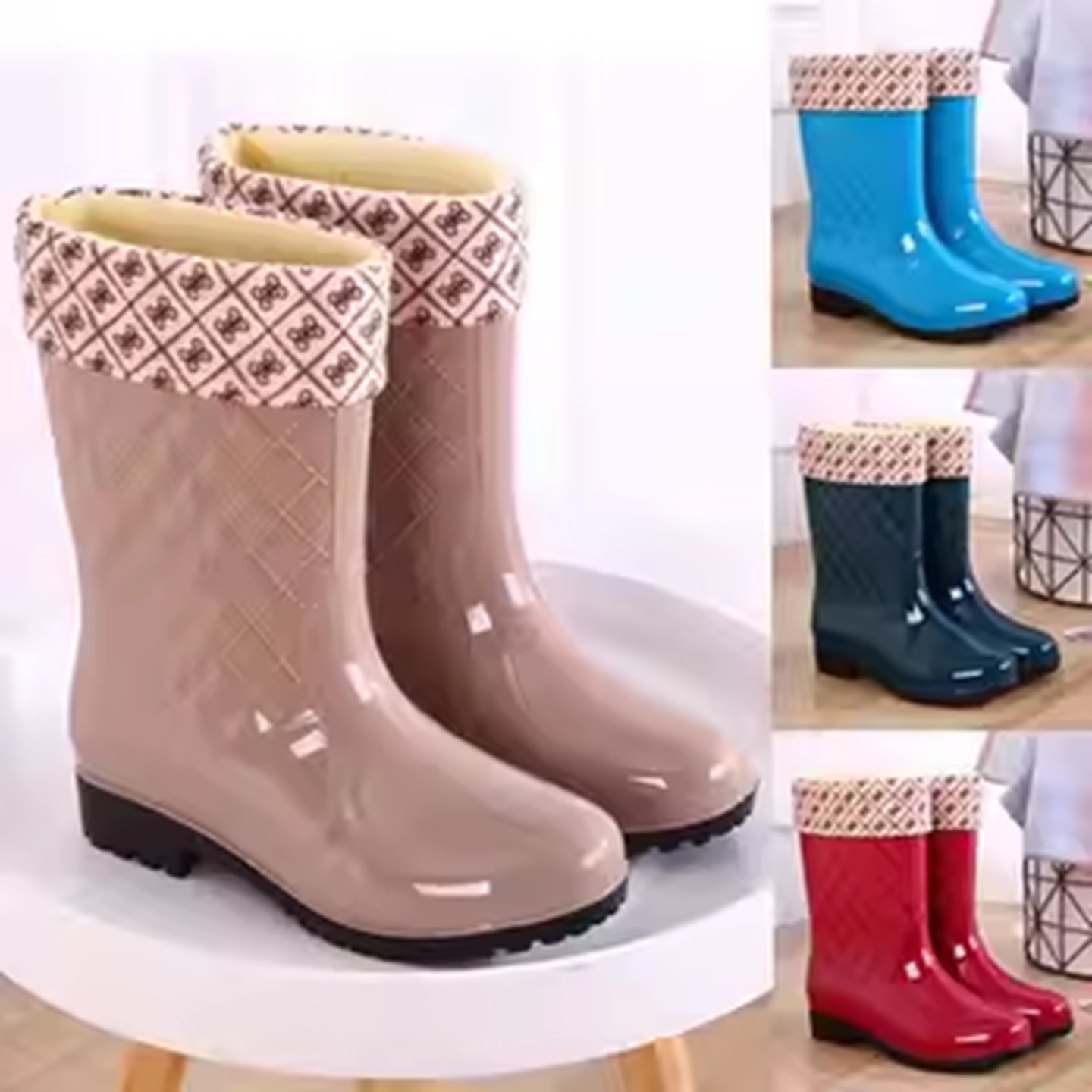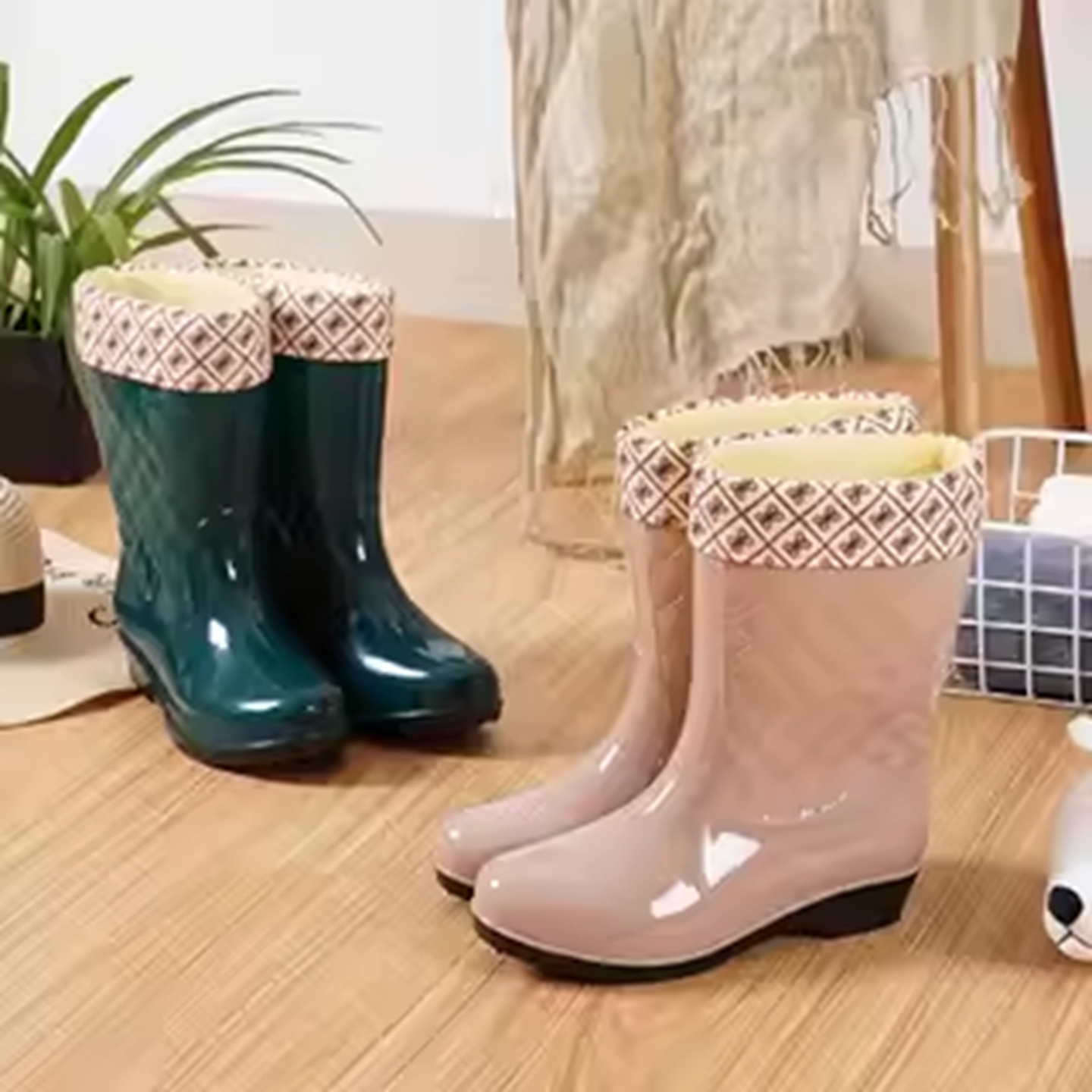 高筒胶鞋 时尚 水鞋 女士中筒保暖秋冬雨靴防滑女式 成人加绒水靴 雨鞋