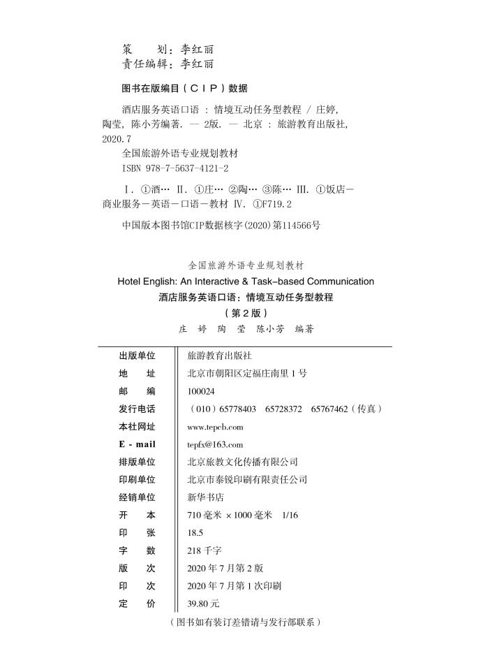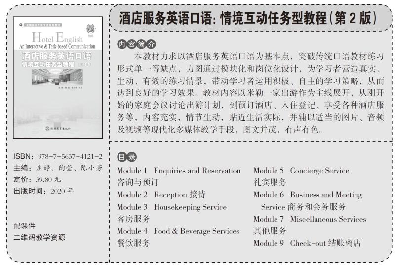 陈小芳主编扫码 陶莹 有资源9787563741212 庄婷 酒店服务英语口语情境互动任务型教程第2版