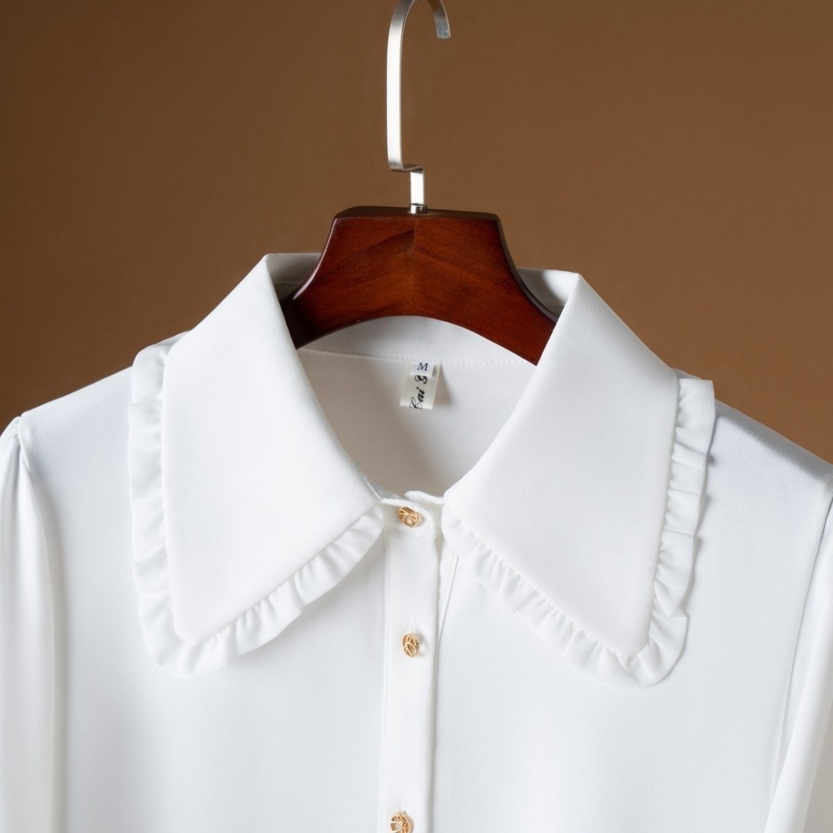 女长袖 加绒 2023年白色衬衫 秋冬上衣女新款 娃娃领气质衬衣 不加绒