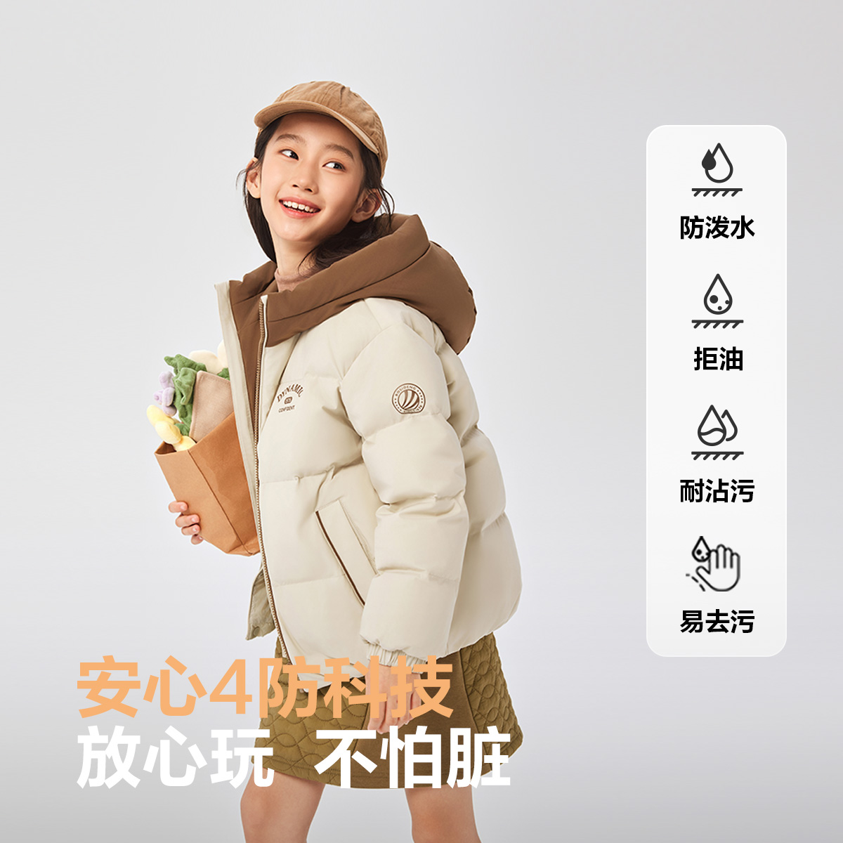 波司登2025新款 运动儿童羽绒服男童女童连帽5A抗菌绒三防外套 短款