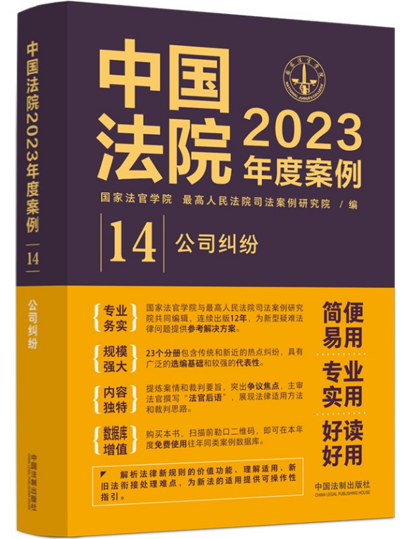 最高人民法院司法案例研究院 国家法官学院 编 中国法制出版 9787521632828 中国法院2023年度案例14 社 公司纠纷