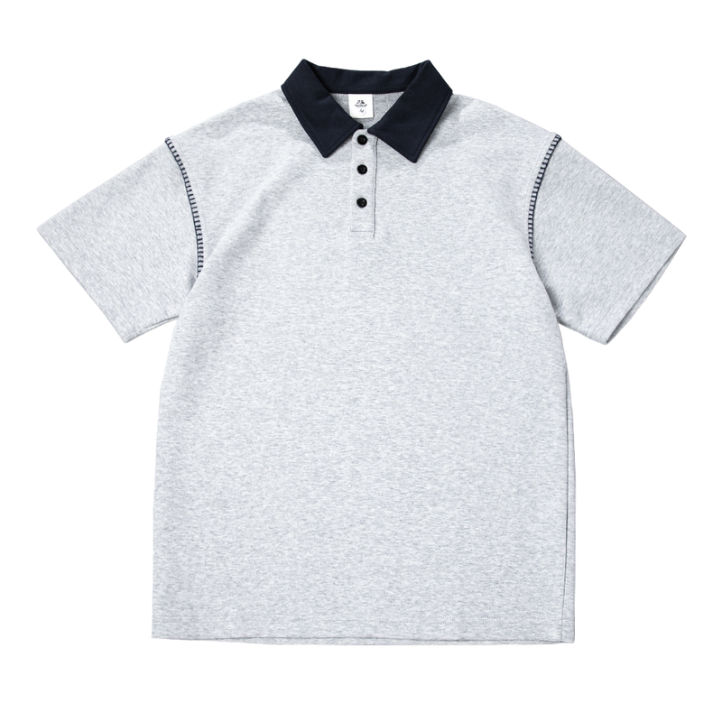 简约宽松阔版 拼接撞色时尚 翻领T恤男 男款 花灰色明线拼接polo短袖