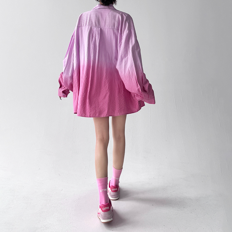 经典 新款 百搭通勤风简约上衣 女2025秋装 秋水伊人翻领蓝色条纹衬衫