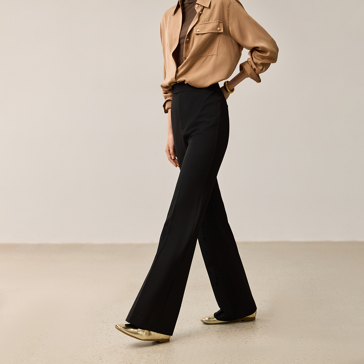 休闲裤 显瘦通勤神裤 LILY色纺黑色喇叭裤 女奥莱冬新款 暖感磨毛