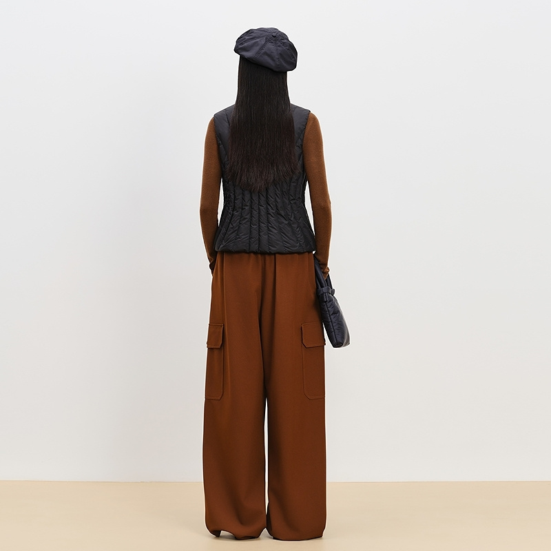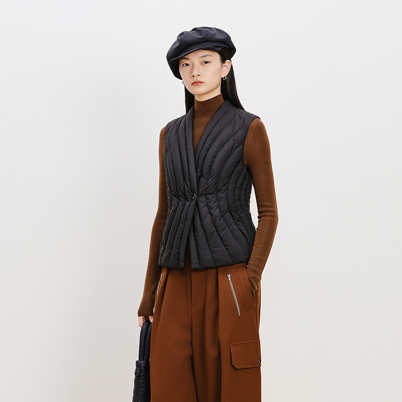 气质水波绗线鹅绒收腰黑色羽绒服马甲女 AUM噢姆冬季 90%高充绒