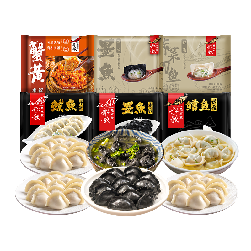 船歌鱼水饺全家福6袋水饺组合海鲜饺子早餐蒸饺煎饺1320g简装
