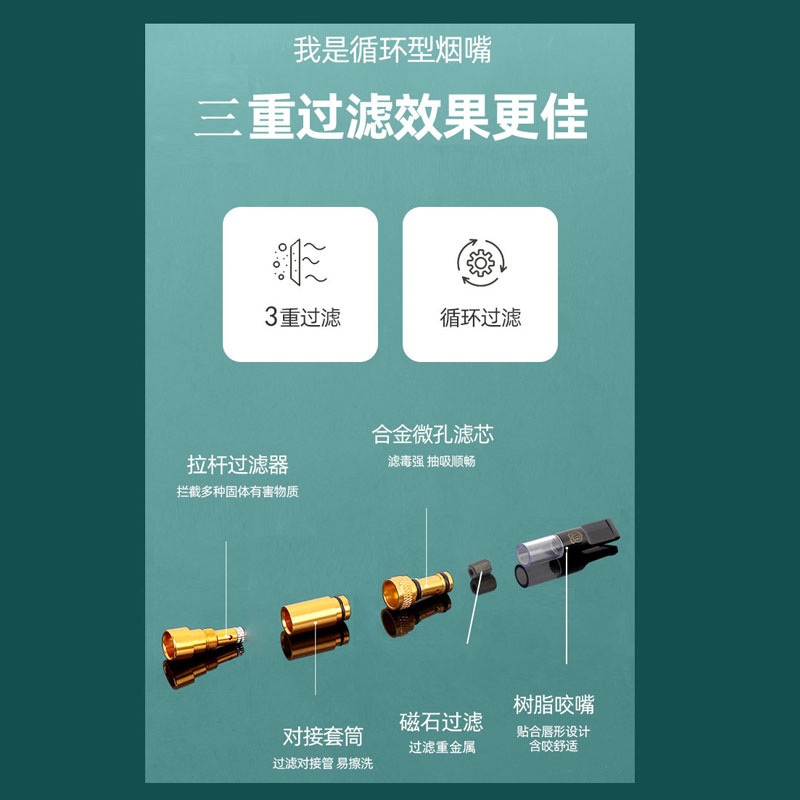 名爵循环烟嘴过滤器粗中细三用焦油过滤嘴男士 可清洗拉杆滤芯烟嘴