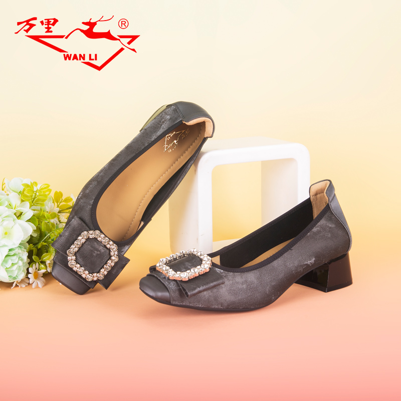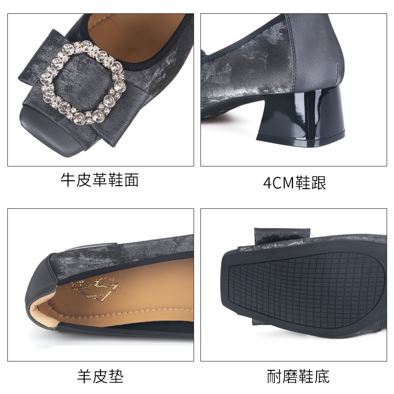 单鞋 羊皮浅口法式 千百度粗高跟鞋 异形跟职业通勤大码 静音系列