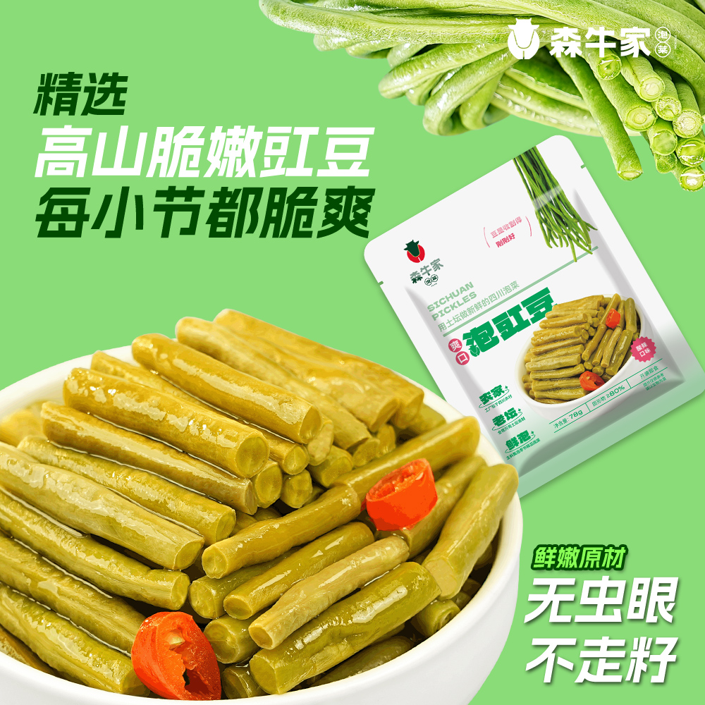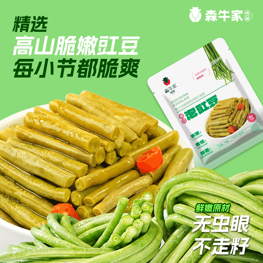 森牛家四川泡菜正宗母水农家老坛什锦鲜嫩爽口即食下饭泡豇豆78g